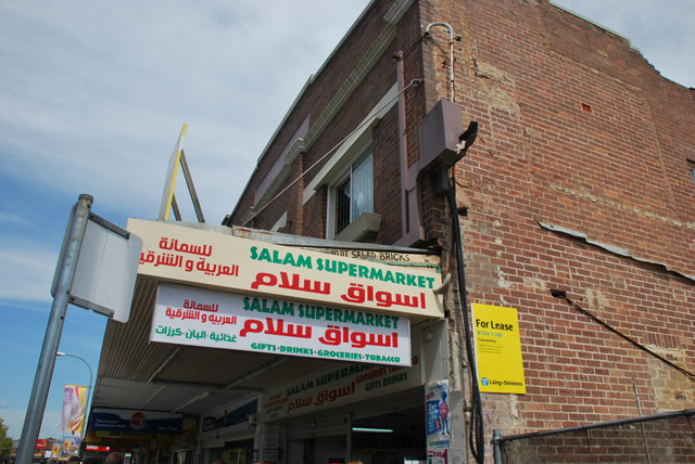 A local supermarket sign. In an area with a high unemployment rate (9.7%) relative to the rest of Sydney (5.7%), many migrants in the Fairfield area become self-employed as small business owners serving their local community.