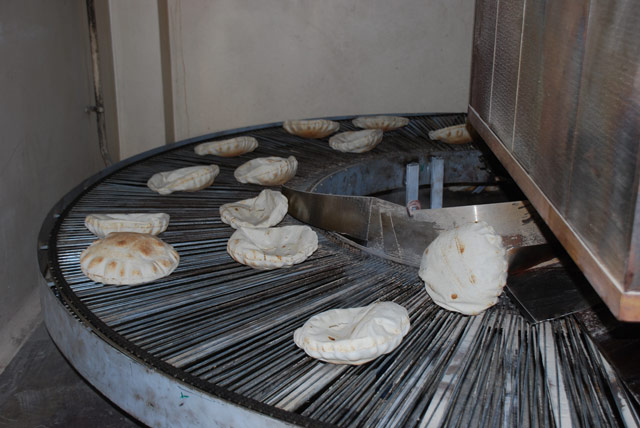 Freshly baked Lebanese bread at a local bakery run by a Chaldean Assyrian family which supplies many of the local shops.