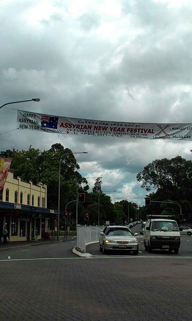 Assyrians are among the five main ancestry groups residing in the broader Fairfield City area, and have a notable presence in the suburb of Fairfield itself. A banner in the Fairfield city centre celebrates the Assyrian New Year and advertises the Assyrian New Year Festival. The Assyrian New Year Festival is one of many cultural festivals celebrated in the broader Fairfield local government area, reflecting the diverse cultural communities that have settled and grown in the Fairfield area. Other major festivals include the Lunar New Year Festival, and the Full Moon Festival, both held in Cabramatta.