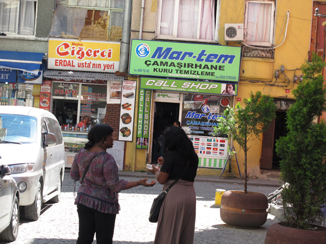 There are increasingly more Africans arriving in Kumkapi. The picture shows one of the commercial laundries. Because migrants generally do not know the exact period of their stay, they don’t invest in buying durable goods, such as washing machines. Hence they use them in these shops. Migrants are usually young men, but there are also women and children.